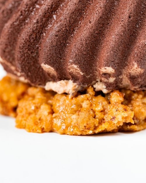 Le croquant du Streusel équilibre l'onctuosité de notre mousse praliné et noix de cajou; Au coeur de cette merveille, un crémeux infusé à la noix de cajou. On n'arrête pas les surprise, en son centre, une noix entière.